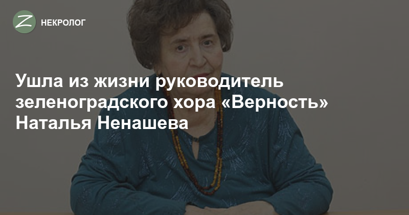 18 июля скончалась Наталья Григорьевна Ненашева — бессменный руководитель хора «Верность», более пятидесяти лет проработавшая школьным учителем музыки. Прощание состоится в четверг 21 июля в 9:30 в траурном зале зеленоградской больницы.