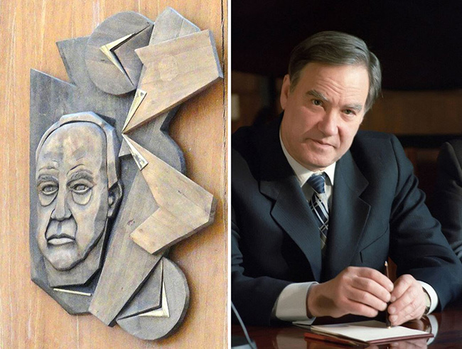Во-первых, физик Петр Капица. Эту версию предложила экс-директор музея МИЭТа Вера Беляева. В то время, когда был изготовлен портрет — в 1971 году — Петру Леонидовичу Капице было 77 лет. И некоторое сходство действительно присутствует.