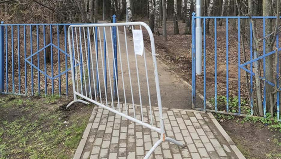 Из-за эпидемии прогулочная зона вокруг Школьного озера закрыта металлическими ограждениями. Местные жители регулярно отодвигали их, а теперь пытаются по-хорошему договориться с полицией.