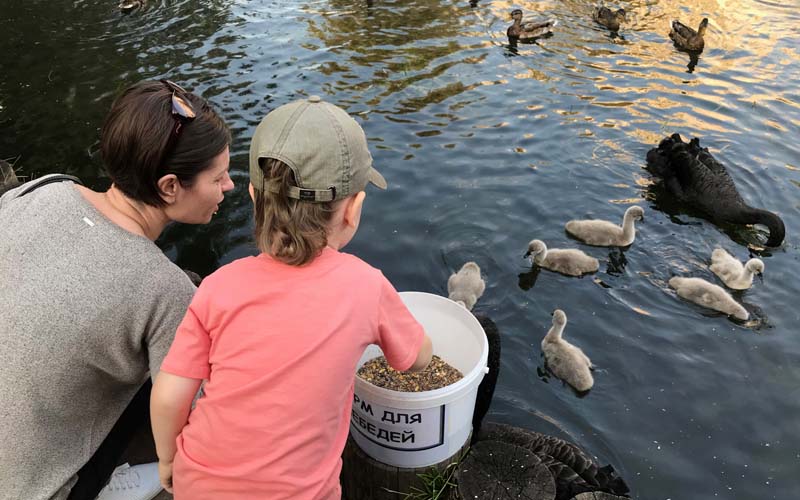 Недавно пара зеленоградских черных лебедей обзавелась потомством из шести птенцов — и к водоему началось настоящее паломничество. Несмотря на многократные предупреждения о том, что стихийная подкормка — смертельно опасна для пернатых обитателей Быкова болота, отдыхающие продолжают бросать еду в воду.