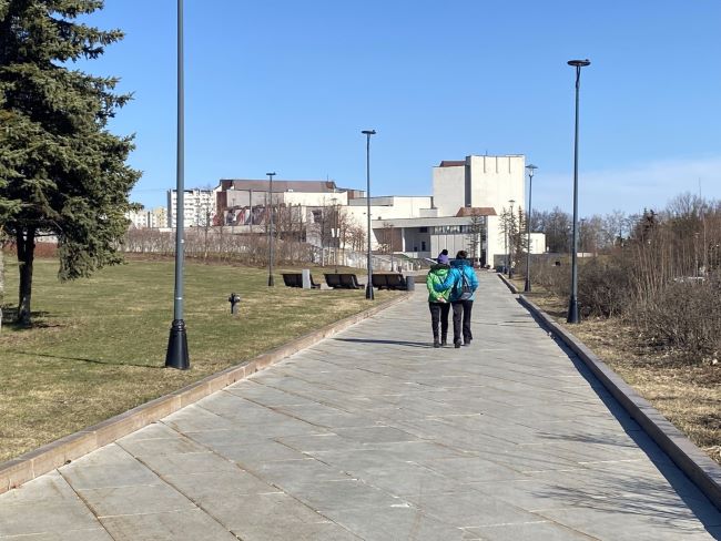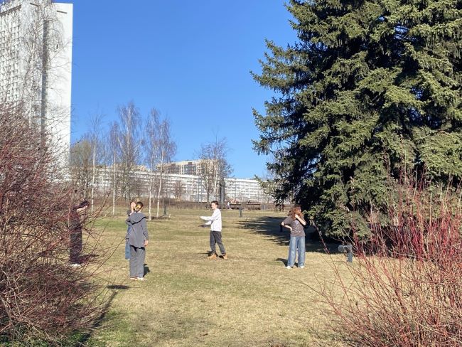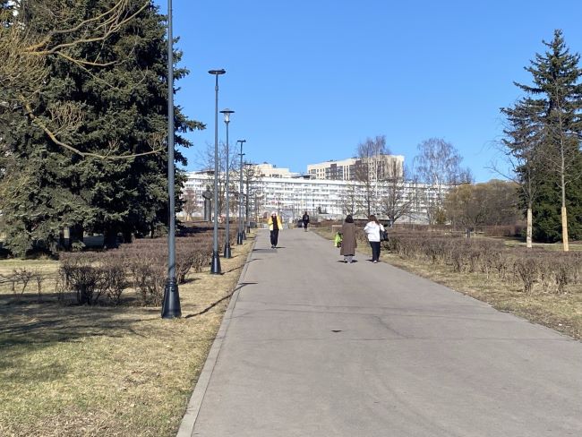 На улице хорошая погода: взрослые гуляют по парковым дорожкам, молодёжь играет на подсохшем газоне. А на лодочную станцию уже привезли транспорт.