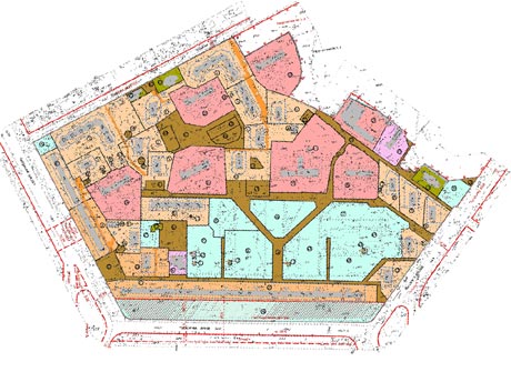 В проекте межевания 3б микрорайона представлены границы участков придомовых и общих территорий 3б микрорайона — от Яблоневой аллеи до «Флейты».Территория делится на 77 участков, на которых расположены 53 здания, в том числе 21 жилой дом, остальное — школы, детские сады, социальные и коммунальные учреждения. 9,5 гектара земли выделяются под строительство — это восемь жилых домов на месте снесенных «хрущёвок» возле корпуса 360 («Флейты»), два здания общественно делового назначения — между корпусами 337 и 338а и напротив корпуса 350, одно неопределённого (просто «нежилое здание») и подземные гаражи под склоном между «Флейтой» и Савёлкинским проездом — под них выделено 2,5 гектара.